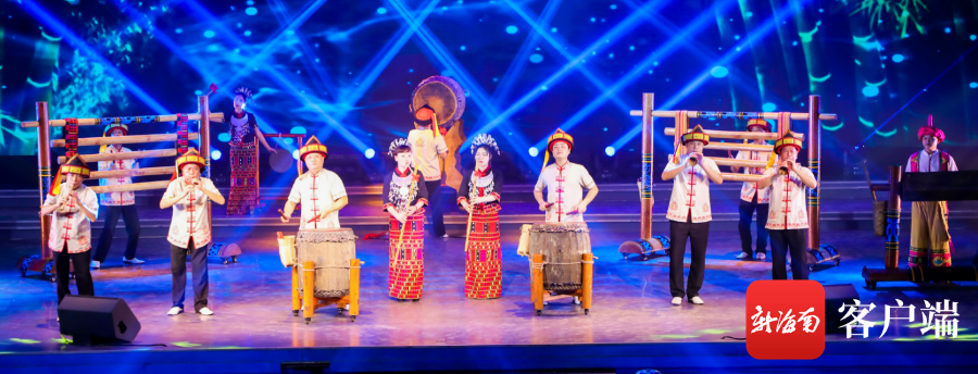 5月29日下午,海南陵水椰田古寨首屆黎族苗族文化節開幕。圖為黎族傳統樂器表演。記者 利聲富 攝
