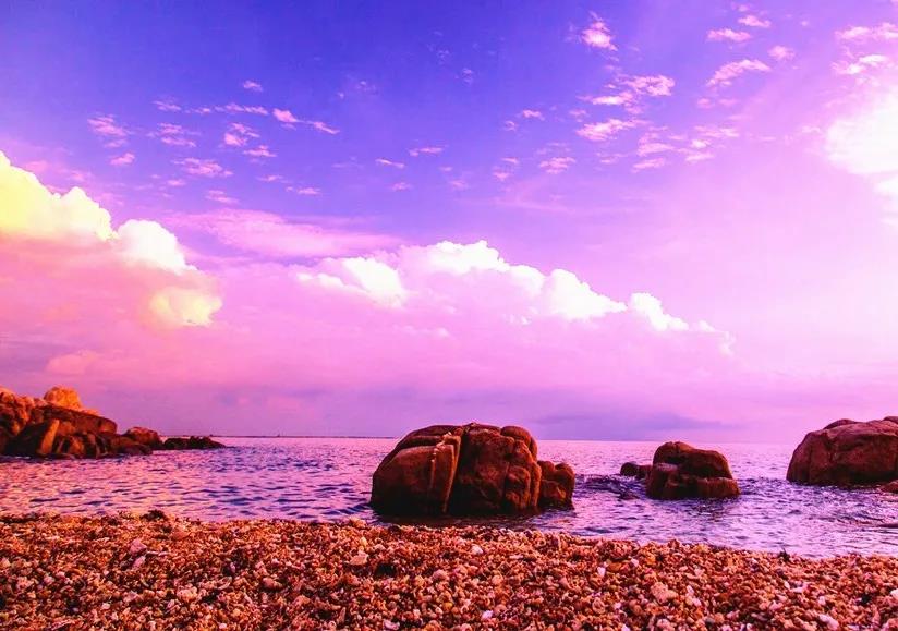 這里是海南最澄凈的海岸線,唯一未經大規模開發的原生景區。有成片的礁石海岸,有如棋子般的卵石潮間帶,也有“萬畝沙漠落海邊”的細膩沙灘。最適合觀賞海上落日的地點,它的美,隨手一拍就是電影大片。
