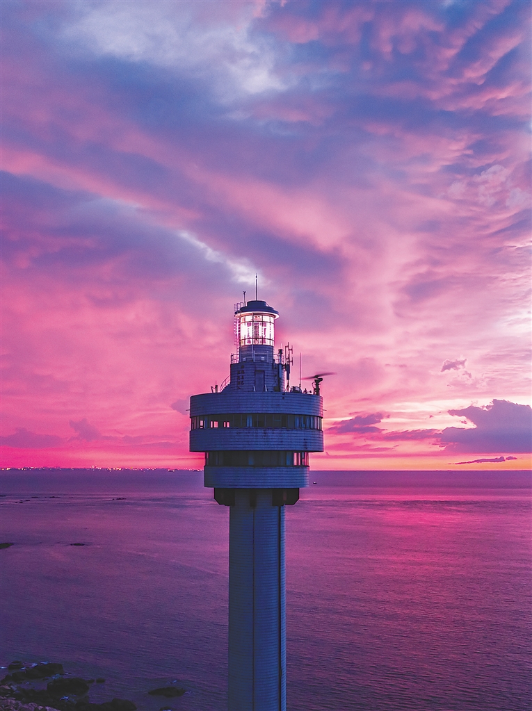 神州半島東靠牛標嶺,南瀕浩潮南海,西依老爺海港口,北臨東澳港,這里的燈塔不僅是海港的守望者,還成為地標性景點。沿著深入海中的護堤走進去,就來到了燈塔腳下。在碧藍大海的映襯下,紅白相間的燈塔格外清新。傍晚時分,在晚霞和海水的映襯下,多彩夢幻的畫面便呈現在眼前,讓人沉浸在一眼天涯的浪漫中。