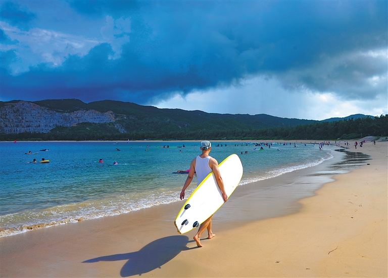 眾多游客在萬寧日月灣沖浪。海南日報記者 袁琛 攝