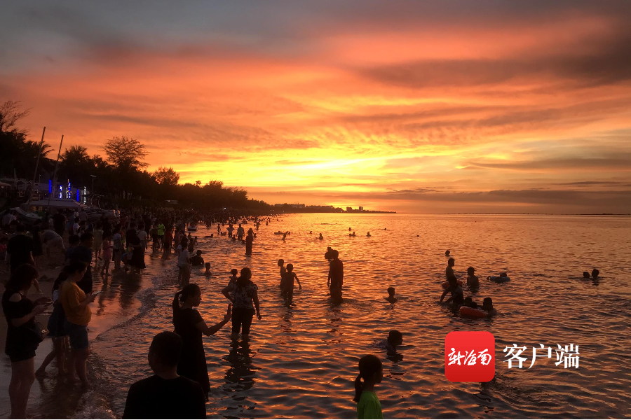 新海南客戶端、南海網(wǎng)、南國(guó)都市報(bào)6月14日消息(記者 陳衛(wèi)東)6月14日端午節(jié),市民游客在海口西秀海灘游玩。新海南客戶端、南海網(wǎng)、南國(guó)都市報(bào)記者實(shí)拍海口西秀海灘落日美景,當(dāng)太陽(yáng)緩緩落下,晚霞染紅了天空。