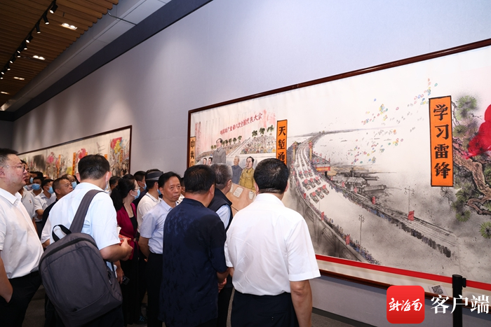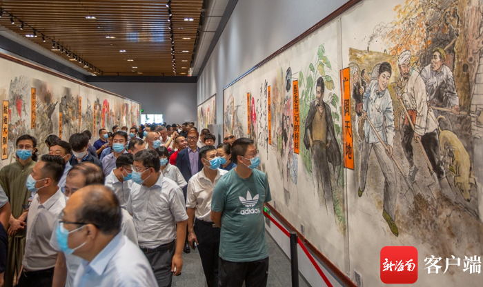 畫展首日,慕名而來的市民、游客絡繹不絕。本次展出的畫作《信仰的紅色印記》由海南省文聯副主席李福順創作,畫作長達180米、高2米,共104個畫面。采用中國傳統水墨畫的形式,描繪了中國共產黨自成立以來100年波瀾壯闊的歷史。