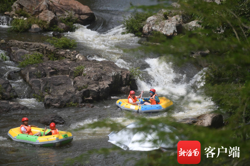 △緊張刺激的五指山紅峽谷漂流。記者 沙曉峰 攝