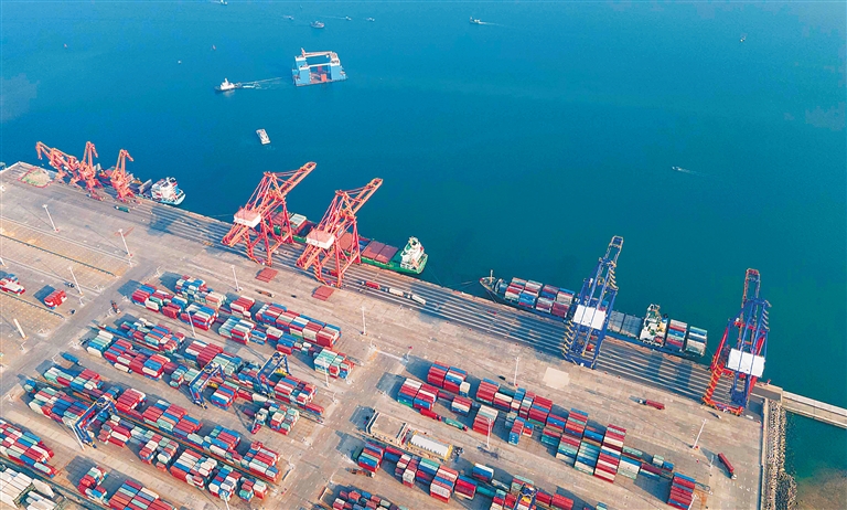 △洋浦經(jīng)濟開發(fā)區(qū)小鏟灘碼頭一派繁忙。海南自貿(mào)港啟動建設(shè)一周年,以“中國洋浦港”為船籍港開展國際登記船舶數(shù)量從無到有,新增登記船舶28艘,新增國際運力約475萬載重噸,占全國新增國際運力的32%。海南日報記者 陳元才 攝