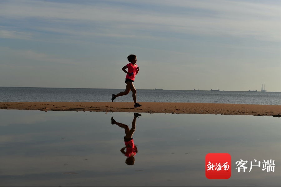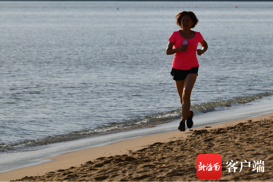 6月21日,夏至,清晨,在海邊跑步。記者 陳衛東攝
