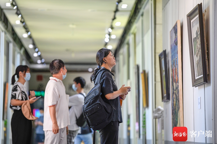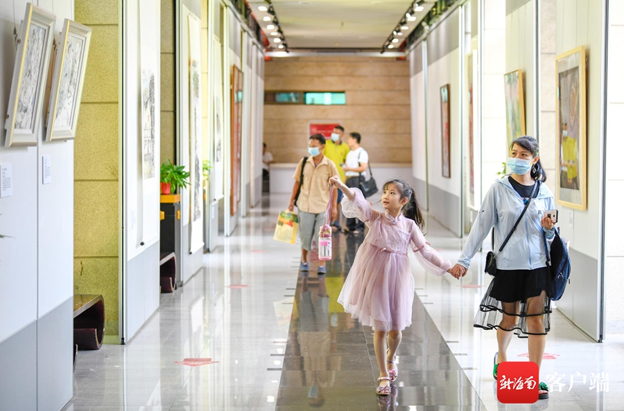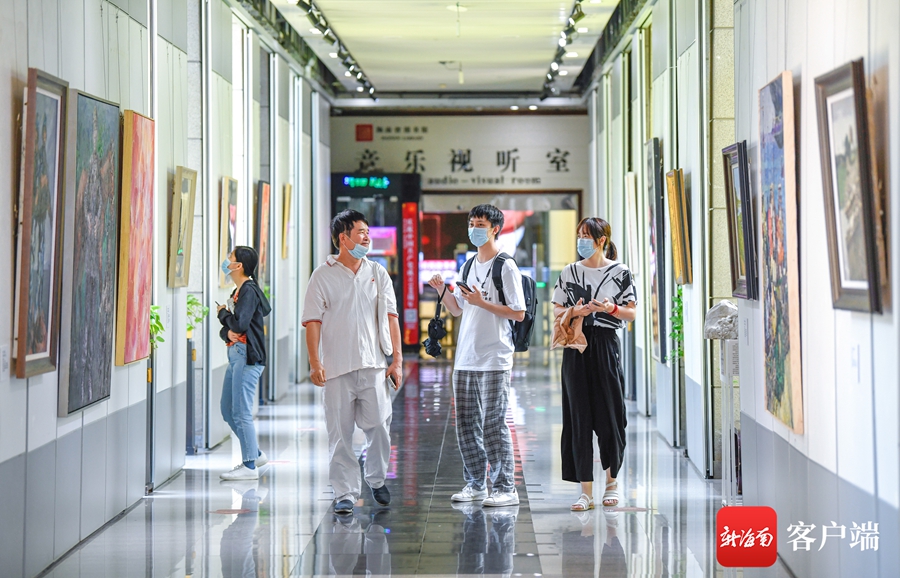 7月1日,“慶祝中國共產黨成立100周年”紅色經典美術作品展在海南省圖書館一樓展廳及正門廣場舉行。記者 李昊 攝
