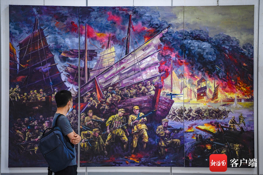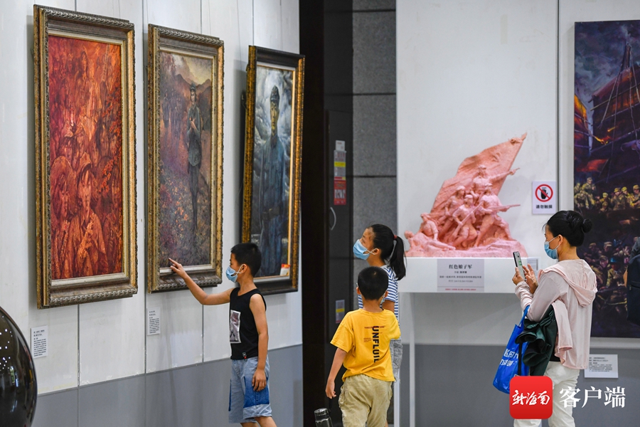 組圖丨“慶祝中國共產黨成立100周年”紅色經典美術作品展在??谂e行