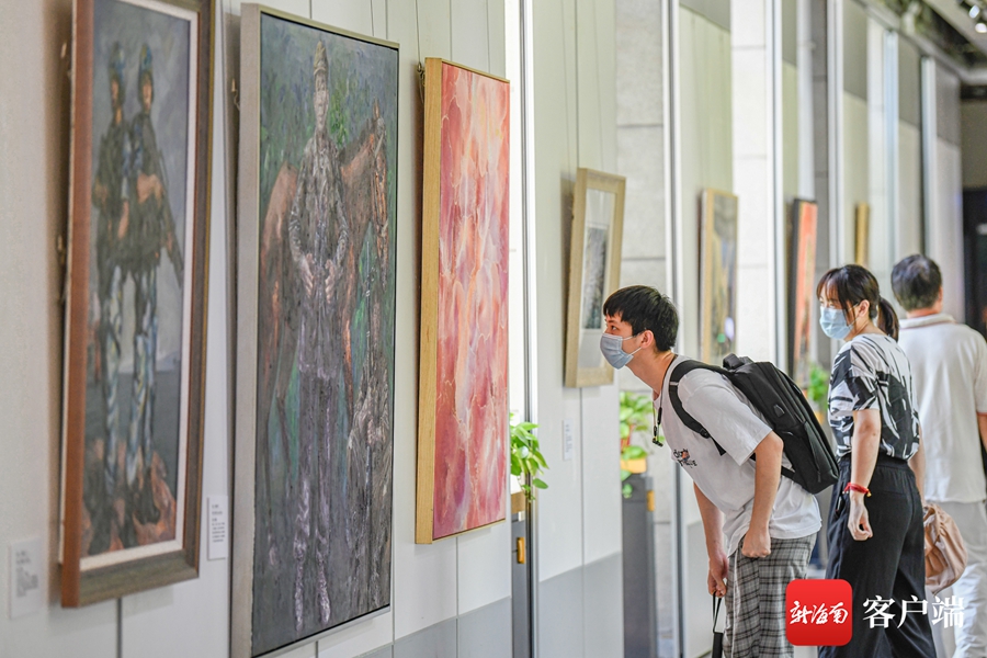 ?7月1日,“慶祝中國共產黨成立100周年”紅色經典美術作品展在海南省圖書館一樓展廳及正門廣場舉行。記者 李昊 攝