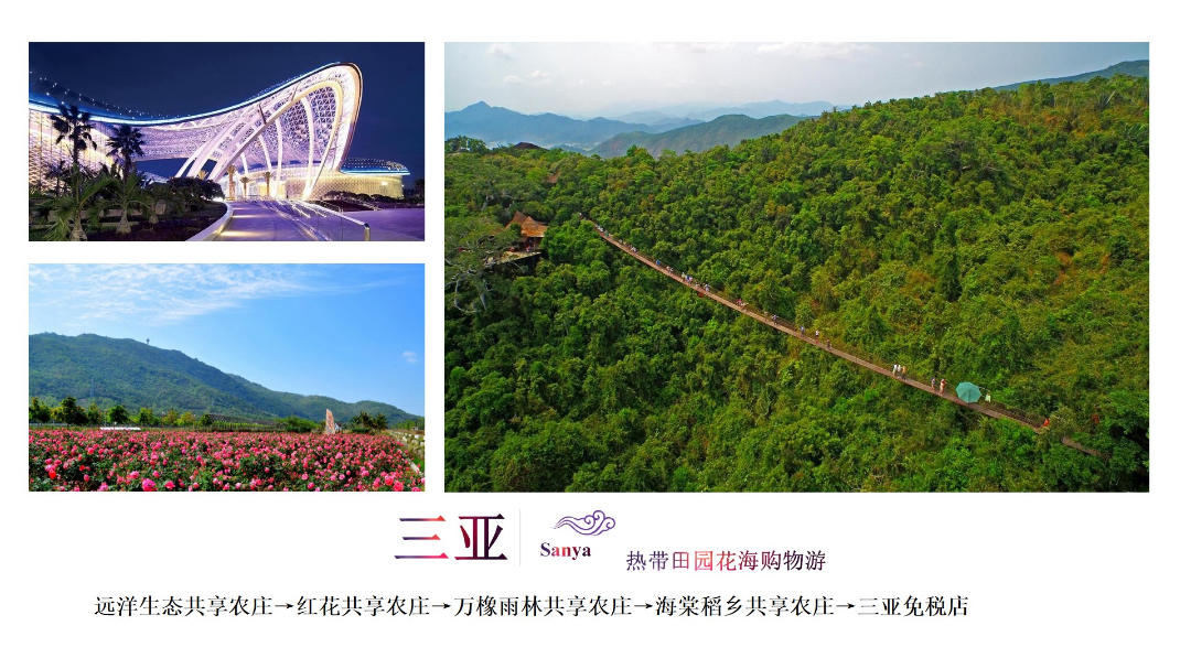 遠洋生態共享農莊→紅花共享農莊→萬橡雨林共享農莊→海棠稻鄉共享農莊→三亞免稅店