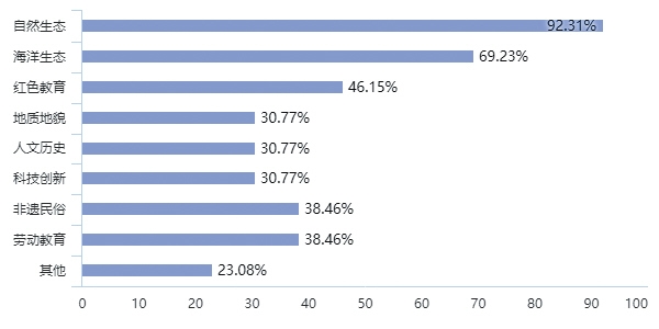 研學(xué)基地調(diào)研總述:島內(nèi)研學(xué)基地近5年發(fā)展迅速,具備一定研學(xué)活動承接經(jīng)驗。以自然生態(tài)資源為依托,形成本土特色類型研學(xué)基地。大部分基地擁有獨立運營能力,并具有良好的接待能力,但與島外聯(lián)動不足。