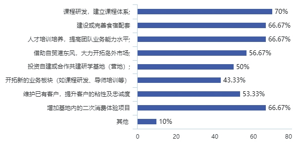 建議大部分機構(gòu)應(yīng)蓄力加強對外合作,完善研學(xué)運營體系和標(biāo)準(zhǔn);基地完善研學(xué)課程體系,加大人才培養(yǎng),提高團隊業(yè)務(wù)能力。同時機構(gòu)和基地也應(yīng)加強與島外行業(yè)間合作聯(lián)動。
