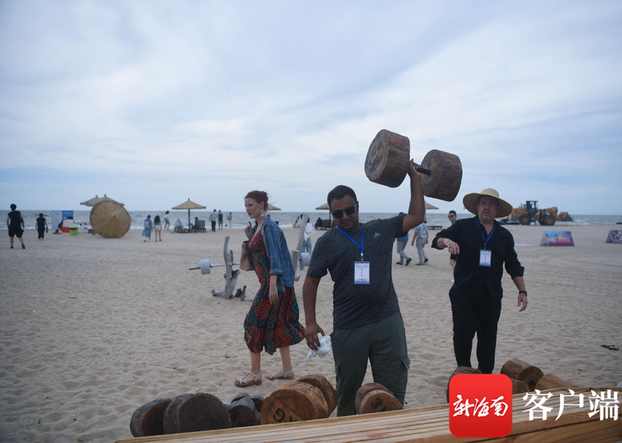 海外傳播官在龍棲灣體驗海灘上的娛樂設施。記者 沙曉峰攝