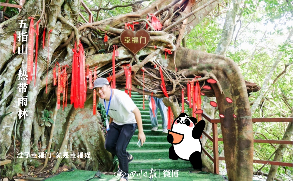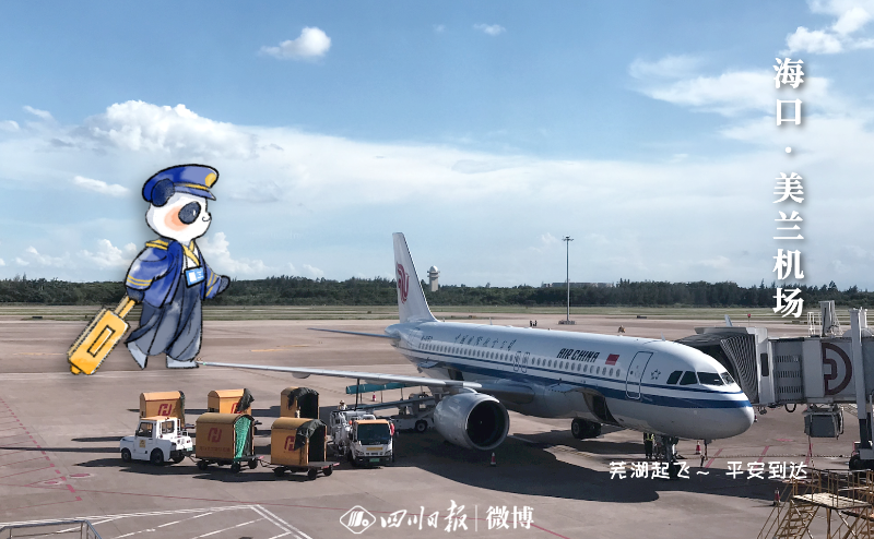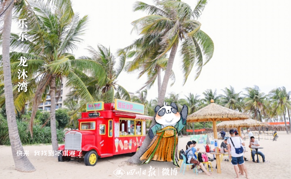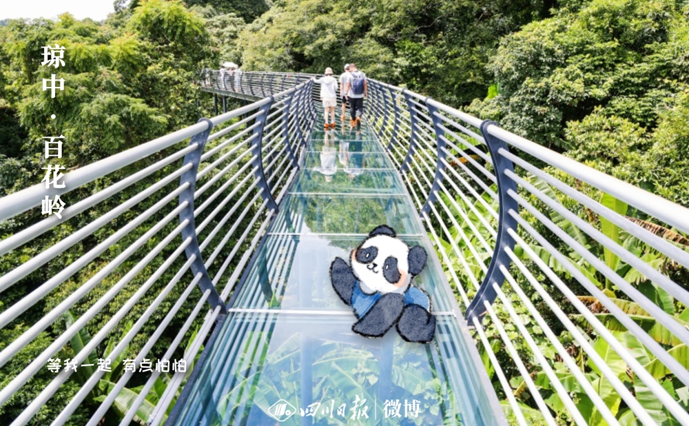 說到這,大家都好奇川川和川寶是誰?其實,川寶是一只手繪“大熊貓”,而川川則是參加此次活動的四川日報新媒體編輯朱軻瑤。川寶此次是帶著任務“跟著”朱軻瑤來到海南的。為了參加這次活動,朱軻瑤出發赴瓊時,特地從美編處拿到擺著各種造型的川寶,并從工作人員處提前獲知了這次行程的到訪地點,提前進行策劃。