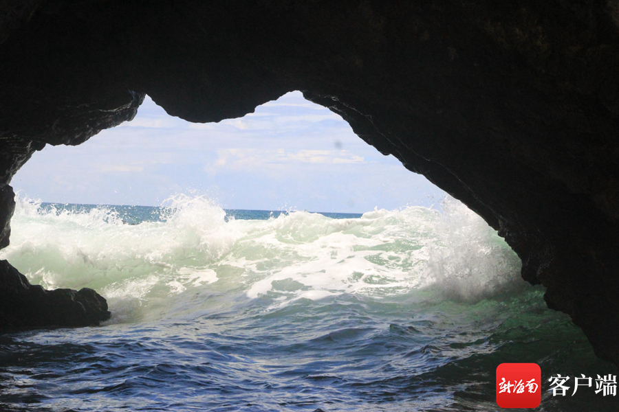 萬寧山欽灣燕子洞口漲潮時的海浪。