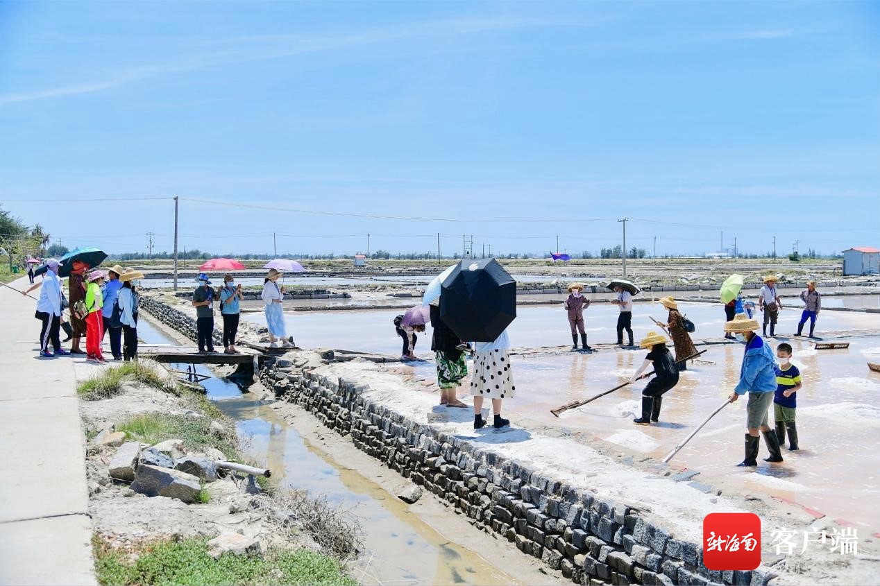 下午的活動中,活動主辦方帶領(lǐng)游客們參觀了三椰級鄉(xiāng)村旅游點(diǎn)鶯歌海鹽場黨建文旅基地和文化博物館。鶯歌海鹽場是中國三大鹽場之一,游客們在參觀鹽文化博物館、園區(qū)的過程中,重走了鹽工路,體驗(yàn)制鹽工作。