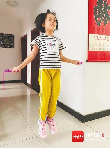 暑假期間,??谑虚L濱小學二年級學生丁梓軒每天堅持完成老師布置的體育作業,“學校留給我們的書面作業不多,體育運動是每天必須完成的作業,可以選擇跳繩、跑步或武術操。有時,爸爸媽媽還會陪著我一起跑步,在班級群里拍照打卡,暑假過得很充實。”