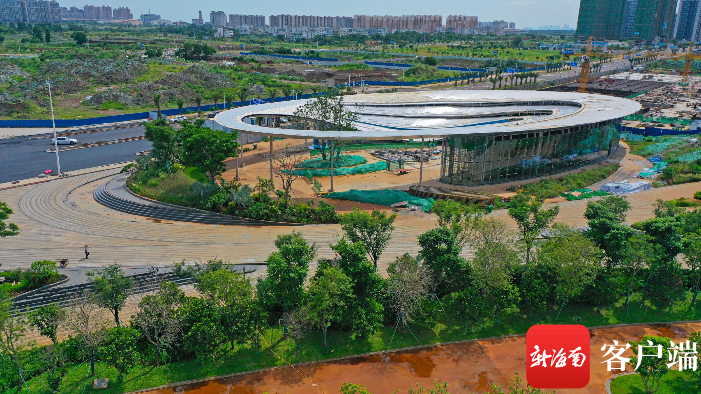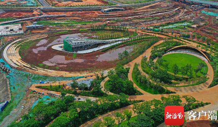 新海南客戶端、南海網、南國都市報8月11日消息(記者汪承賢)8月11日,記者探訪海口市西海岸南部片區公園。目前該公園中心區域綠化完成80%以上,游客中心、水上劇場、主體工程已經完成,進入裝飾階段,雨林之心綠化也成規模。