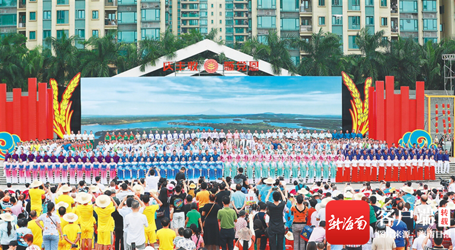 9月23日,2021年中國農民豐收節海南慶?;顒又鲿鰞x式暨儋州調聲節,在儋州市那大鎮市民文化廣場舉行。今年是農業農村現代化規劃啟動實施、鄉村建設行動全面啟動之年,海南舉全省之力推動鄉村振興,推進鞏固拓展脫貧攻堅成果同鄉村振興有效銜接?;顒蝇F場載歌載舞,千人儋州調聲唱豐收,鄉村振興開新局。