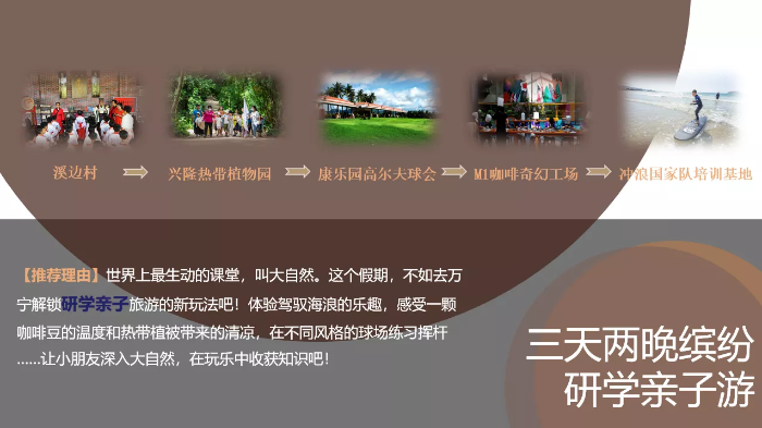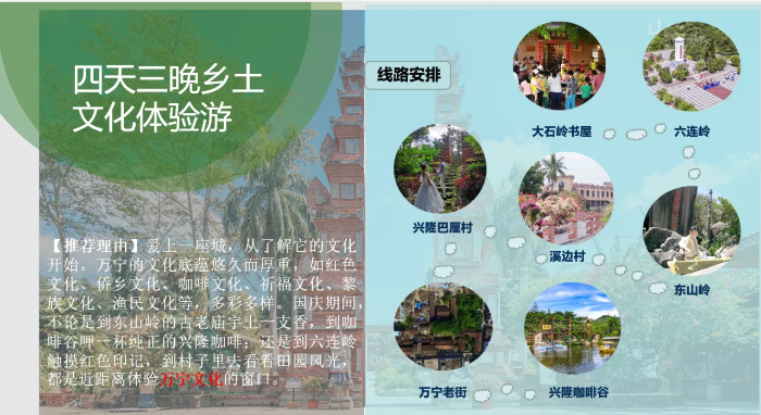萬寧市委常委、宣傳部部長楊志斌表示,國慶假日即將到來,為給來萬寧旅游度假的廣大旅客朋友們有更多的出行選擇,萬寧圍繞“體育+旅游”的新興產(chǎn)業(yè)形態(tài),通過從吃、住、行、游、購、娛等方面著手,精心準(zhǔn)備了眾多繽紛多彩的主題活動、推薦線路,以及系列優(yōu)惠套餐產(chǎn)品。