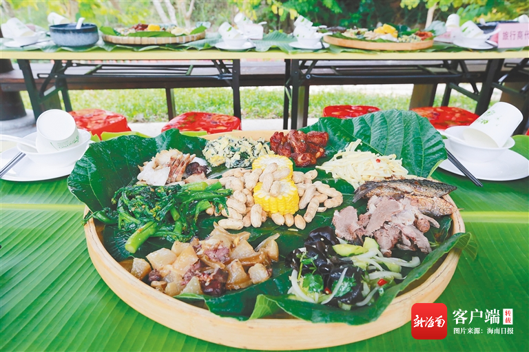 王下鄉“黎花里”文旅小鎮提供的黎族特色飯菜。記者 陳元才 攝