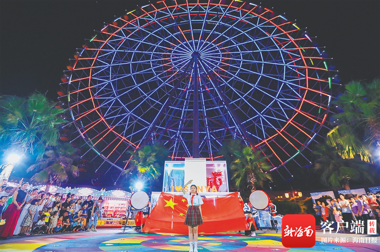 三亞西島漁村“國旗班”首次升旗儀式在西島社區舉行,游客齊唱國歌,祝福祖國。蜈支洲島景區推出“告白祖國”“趣玩海島計劃”“讓中國紅C位出圈”等國慶主題活動,游客觀看景區海陸空聯合表演。三亞天域度假酒店邀請國潮演藝團隊進行快閃表演。三亞灣開展主題為“喜度國慶 情滿三亞灣”無人機天幕光影秀。紅色娘子軍演藝公園組織人員走進景區、酒店、街頭等,營造濃厚節慶的氛圍。