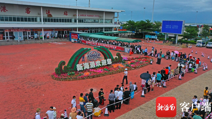 10月11日上午,新海港有序運(yùn)送旅客出島。記者 汪承賢 攝