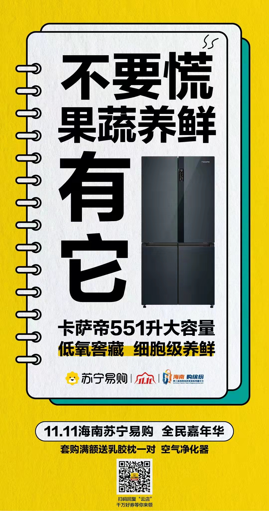 新海南客戶端、南海網、南國都市報11月2日消息(記者 韓星)2021第三屆海南旅游美食購物嘉年華活動期間,聯盟商家海南蘇寧易購推出11.11全民嘉年華促銷優惠活動,即日起至11月12日,多款爆款品牌家電立享活動價,進店顧客還能參與預存送好禮、預存砸金蛋、套購送好禮等優惠。具體促銷信息如下:
