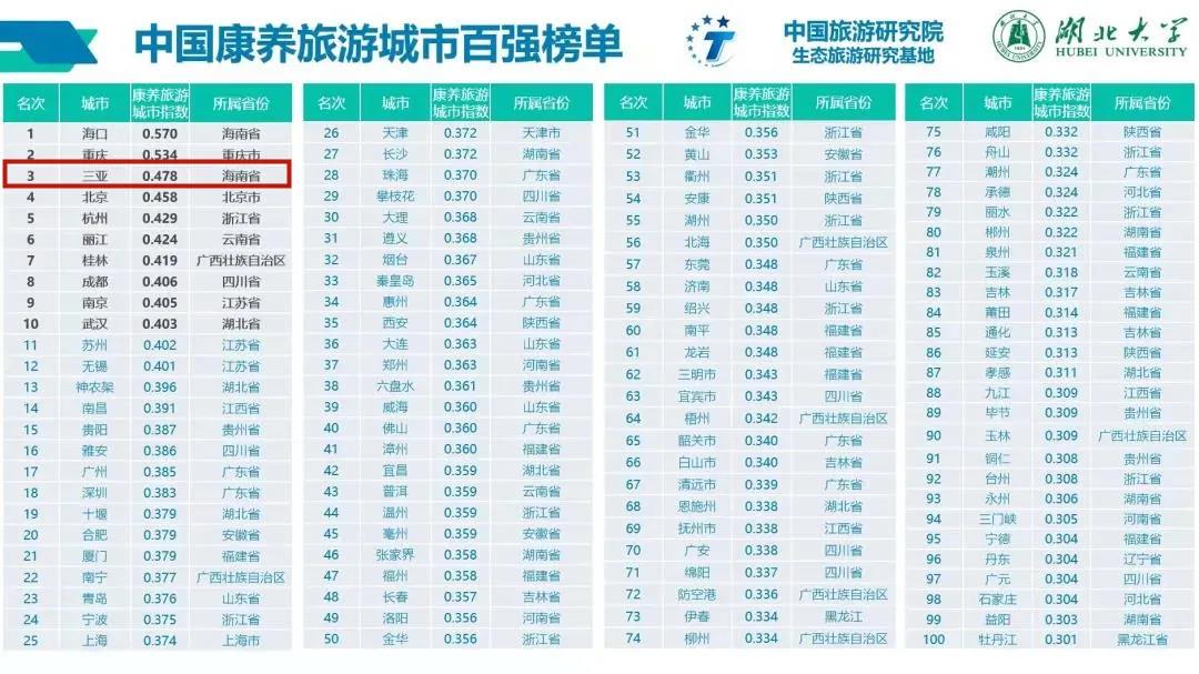 新海南客戶端、南海網、南國都市報12月2日消息(記者沙曉峰)近日,在武漢舉辦的2021中國文化和旅游高峰論壇主論壇上,“中國康養旅游城市百強榜單”正式發布。在上榜的百強城市中,三亞位列第三。