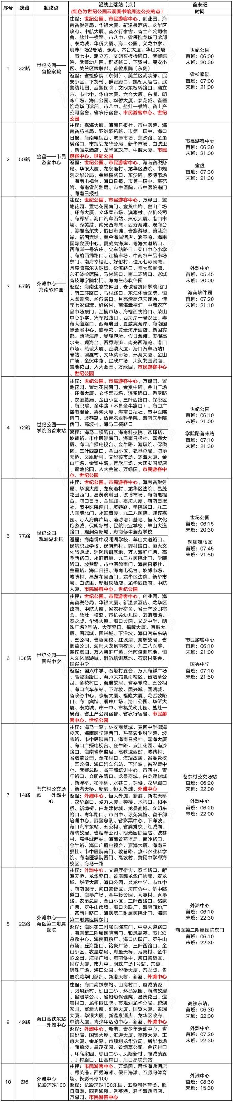 路線一:世紀大橋--世紀公園路--泰華橫路--海口市民游客中心北門停車場