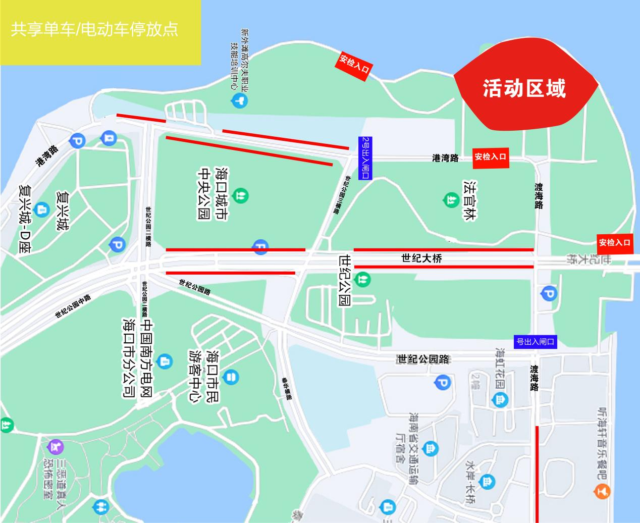 (四)共享單車、電動車停車區(qū)域:位于海南省國際會議展覽中心右側的長歡路停放區(qū)域