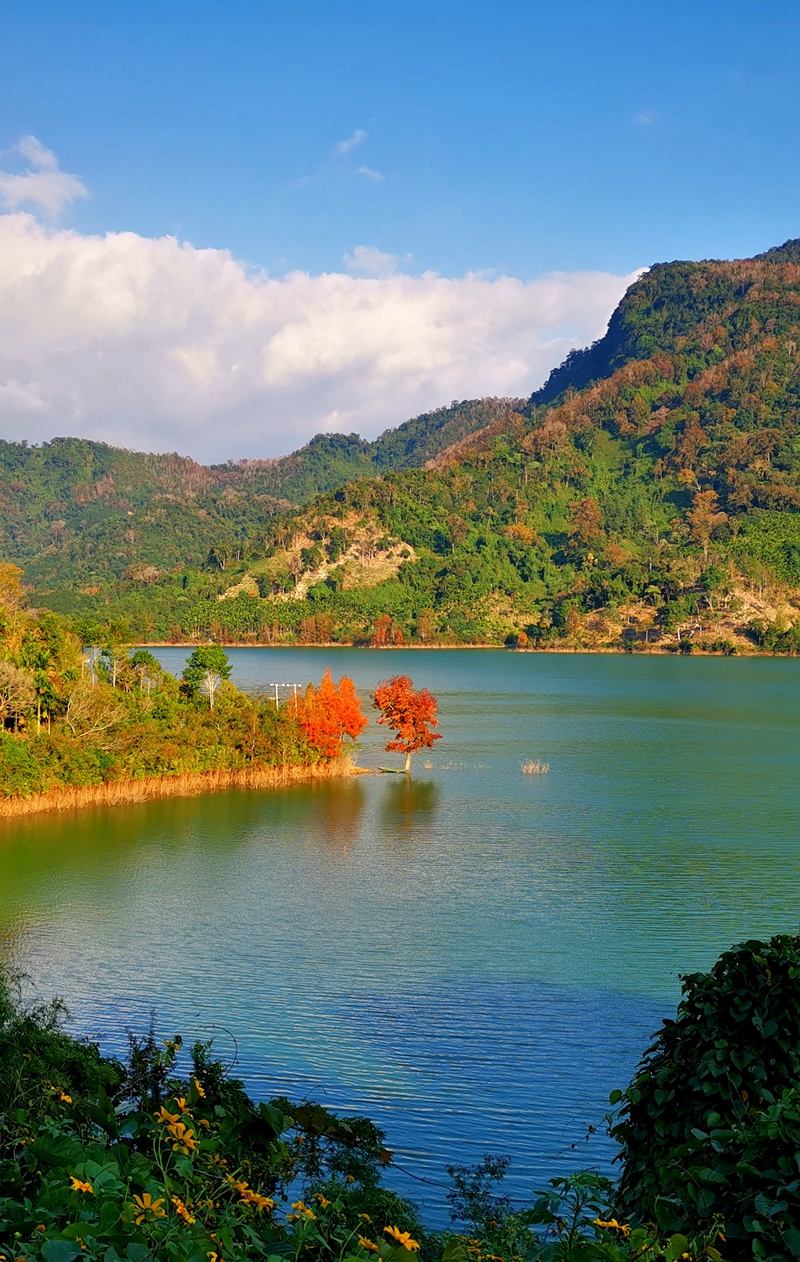 驅車進入水滿鄉(xiāng)區(qū)域,漫步在林間小道和公路邊,山林里的楓葉如閨中的少女開始漸露幾分魅力,游客不僅可以近距離觀賞紅葉,還能遠望山間的紅葉壯觀奇景,獨有的“胭脂紅”自然景觀,讓熱帶雨林里“楓”景無限。