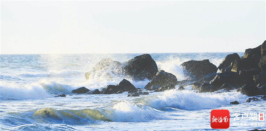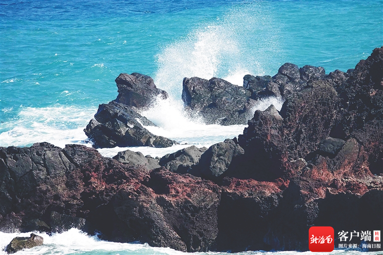 海浪沖擊峨蔓灣的黑色礁石。 海南日報記者 陳元才 攝