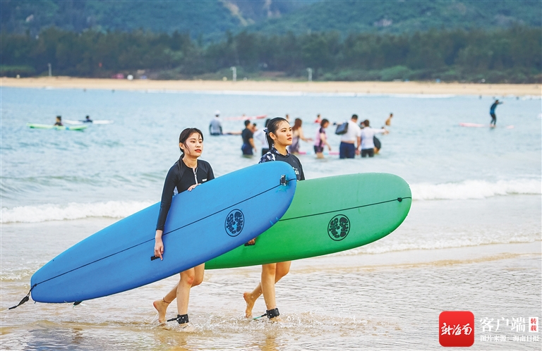 沖浪文化是三亞后海的重要文化元素,海灘上隨處可見抱著沖浪板的身影。海南日報記者 武威 攝