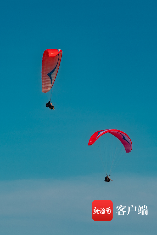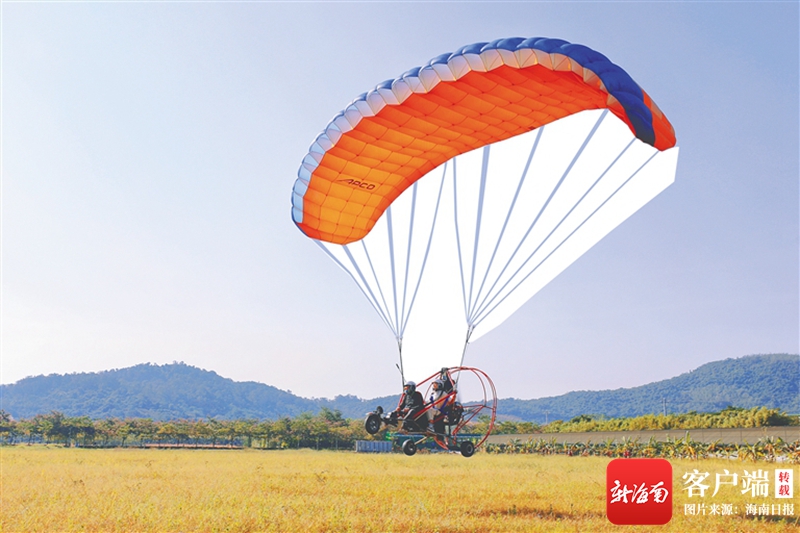 在陵水黎族自治縣紅角嶺航空飛行營地,游客們在教練的帶領下,助跑、加速、騰空,即可在滑翔傘帶動下翱翔于空中,一覽蔚藍無垠的大海、郁郁蔥蔥的綠野和錯落有致的村落,美不勝收。