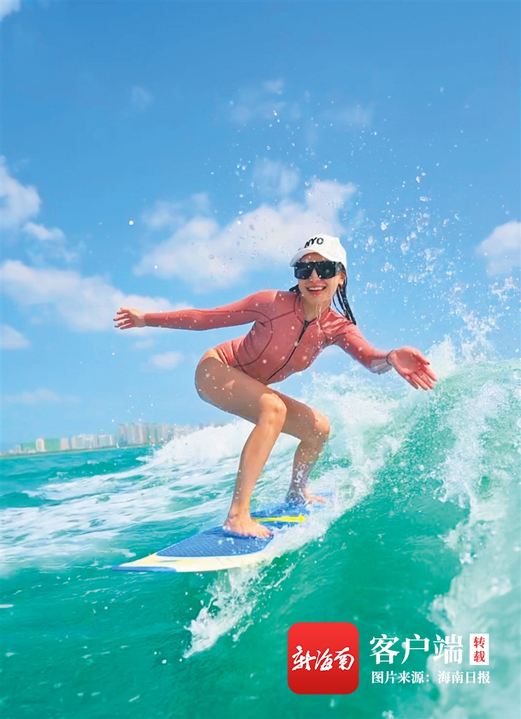 在三亞體驗尾波沖浪的游客。三亞正手浪尾波沖浪俱樂部供圖