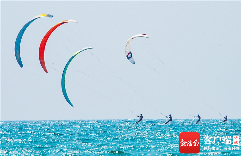 游客在瓊海博鰲體驗風箏沖浪的樂趣。“五一”假期,大批游客來到博鰲體驗海南旅游新玩法。特約記者 蒙鐘德 攝