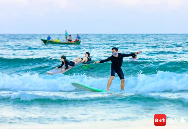 游客在萬寧日月灣體驗沖浪樂趣。萬寧旅文局供圖