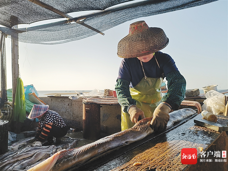 漁民在處理加工新鮮鰻魚。 海南日報記者 李夢瑤 攝