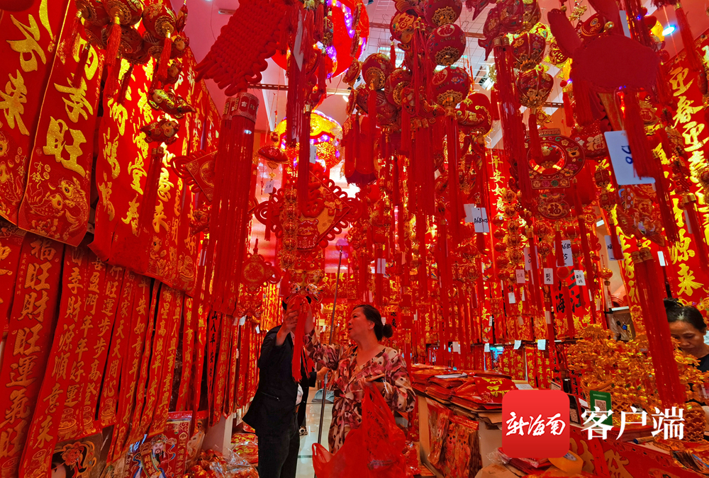 新海南客戶端、南海網(wǎng)、南國都市報1月24日消息(記者 汪承賢)春節(jié)將至,海口年味漸濃。各種春聯(lián)、“福”字、燈籠、虎年生肖飾品等春節(jié)飾品琳瑯滿目,過節(jié)零食、臘味等年貨銷售火熱。市民開始忙碌備年貨,迎接即將到來的春節(jié)。