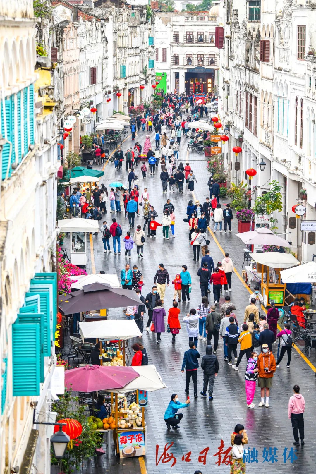 2月1日,正值大年初一,海口騎樓老街年味十足,多樣的文化演出和文創商店吸引眾多市民游客前來游玩。