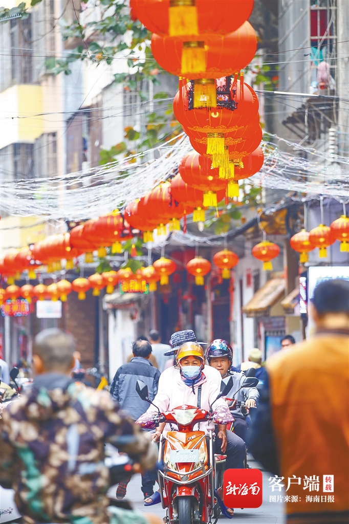 2月13日,元宵節臨近,海口市府城老街繡衣坊掛滿燈籠和特色花燈,營造出喜慶祥和的節日氣氛。海南日報記者 張茂 攝