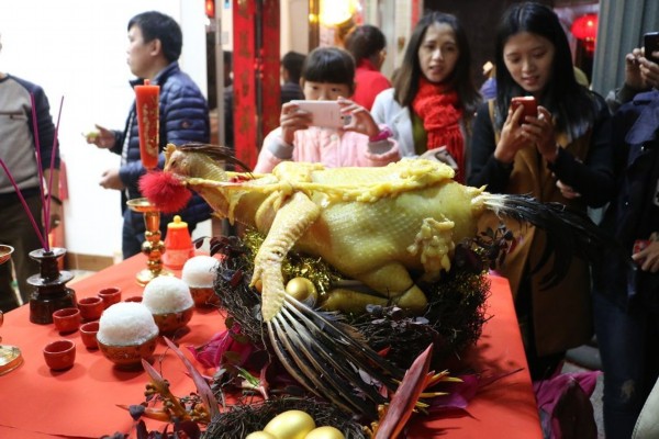 多年來,瓊海博鰲樂城就有元宵節舉辦肥雞比賽的獨特民俗。即元宵節,在青石磚鋪就的老街兩旁,各家門口都擺出一張八仙桌,桌上擺著一只泛著油光、讓人垂涎欲滴的水煮雞,由村里鄉賢組成的評委會評選出奪魁肥雞。肥雞嘴里叼著鮮花,脖子掛著項鏈,象征美好生活。誰家的雞最肥,說明誰家會養雞,也是最勤勞的象征,自然會得到鄉親尊敬。