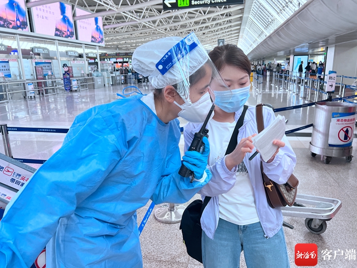 三亞機(jī)場(chǎng)旅客詢問防疫政策。三亞機(jī)場(chǎng)供圖