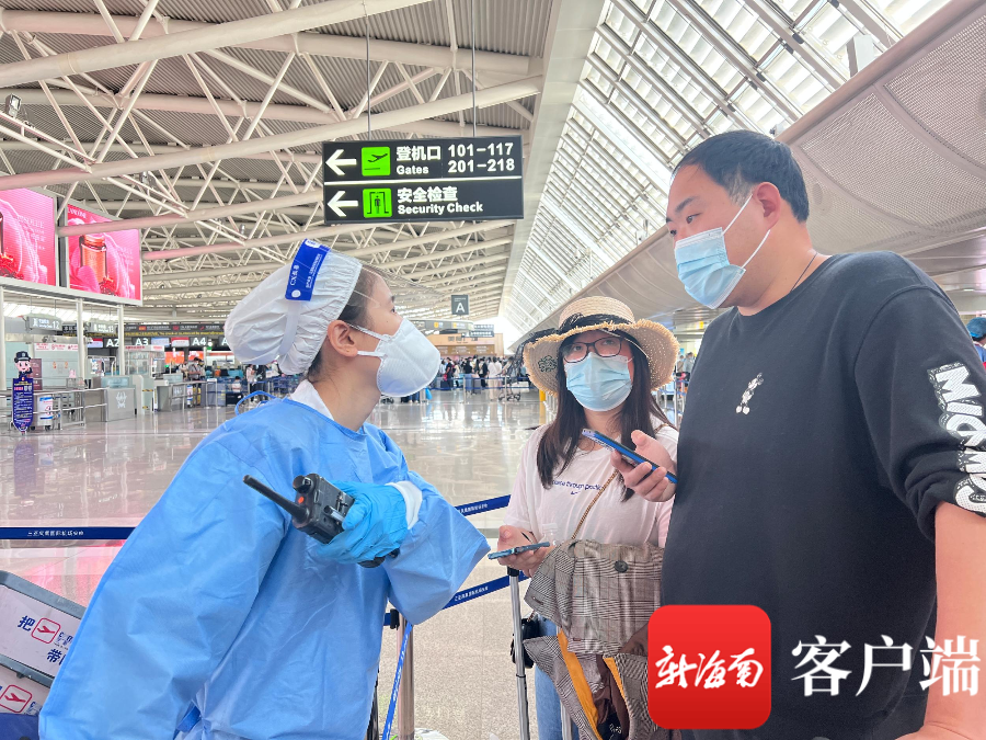 ?旅客咨詢疫情管控措施。三亞機場供圖