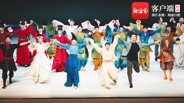 3月3日晚,舞蹈詩劇《只此青綠》二輪全國巡演在海口拉開帷幕。圖為演出結束后,演職人員激情謝幕。海南日報記者 張茂 攝