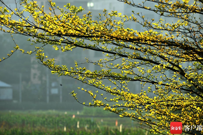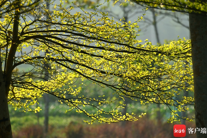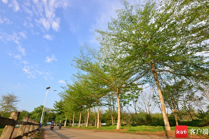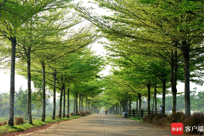 新海南客戶端、南海網、南國都市報3月23日消息(記者 陳衛東)陽春三月,萬物復蘇,充滿生機。在??谖逶春訃覞竦毓珗@內,有一條約六百米長的景觀路,兩旁的大樹長出嫩芽,美不勝收。市民游客紛紛在此取景拍照。