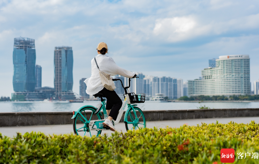 ??跒彻珗@騎行的女孩,眺望著對岸建設中的新廣場。