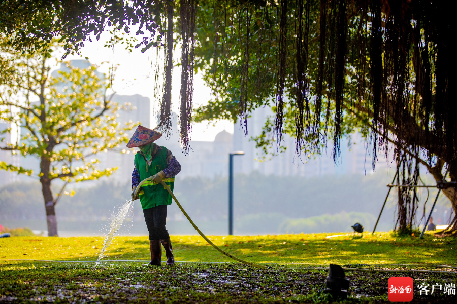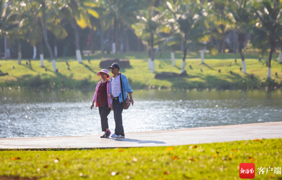 海口灣公園放風箏的老人,用風箏感受著季節轉換。