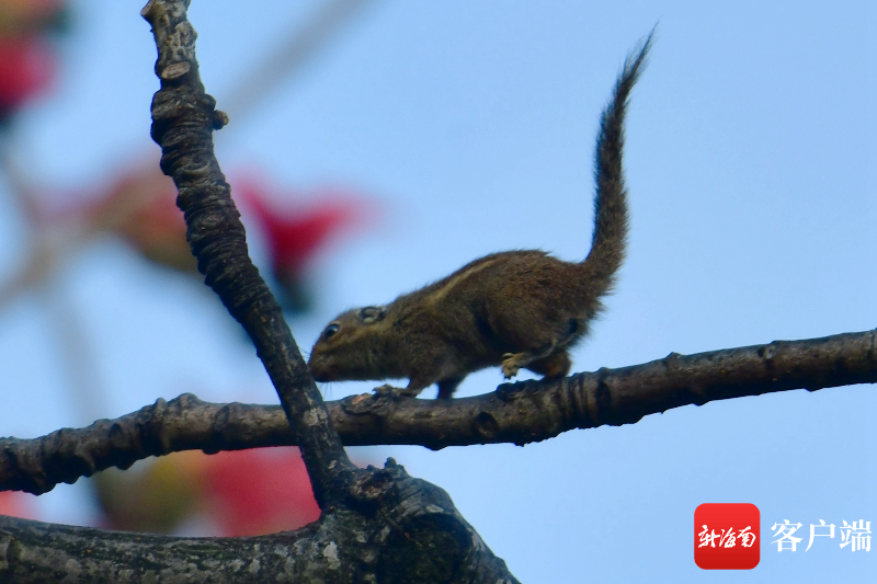 在木棉樹上奔跑的小松鼠。記者 陳衛東攝