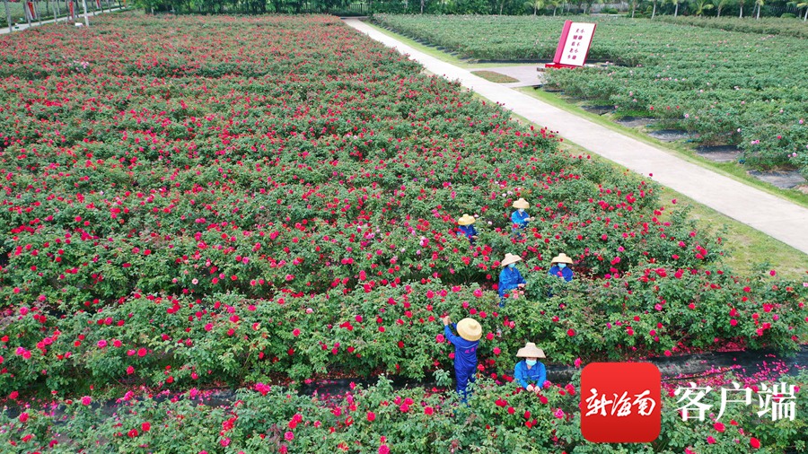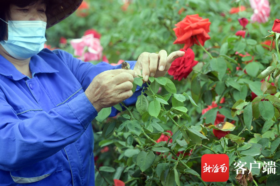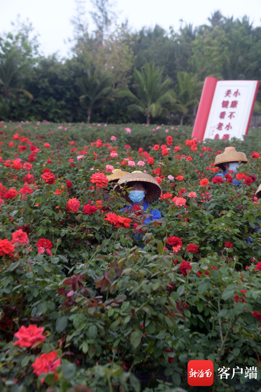 4月20日,三亞玫瑰谷,農民在玫瑰花盛放的田間勞作。記者沙曉峰攝